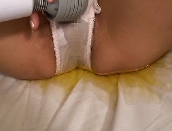 ベッドの上で脚を広げたまま膣を電動マッサージ器で刺激させられて絶頂、白いパンツを穿いたままオシッコをお漏らししてしまい、小便を垂れ流すうちにシーツに薄黄色い染みを広げてしまうシーンがあり。
